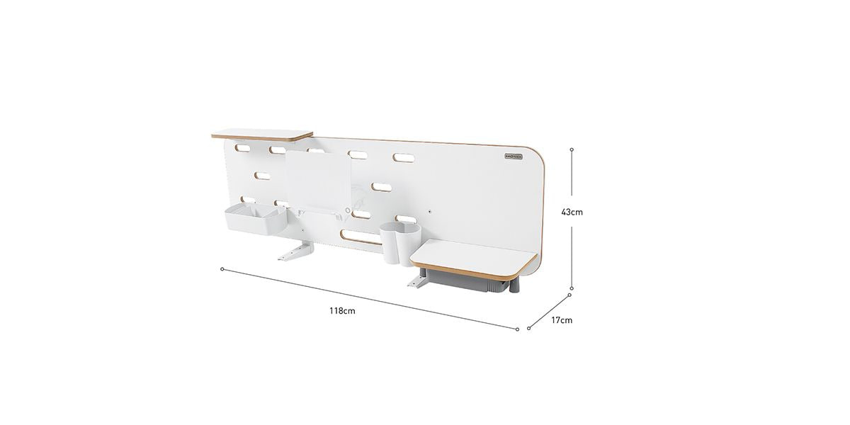 Подходит только к парте «Стол с электроприводом TCT Nanotec E6-120S» (белый). В комплект входит полка для книг, выдвижной ящик для хранения с уникальной конструкцией для увеличения объёма, держатель для карандашей и небольшая дополнительная полка. Многофункциональные боковые отверстия предусмотрены для аккуратного размещения электрических шнуров. Практичная и продуманная система хранения обеспечивает порядок и удобный доступ к канцелярии и учебным материалам.
