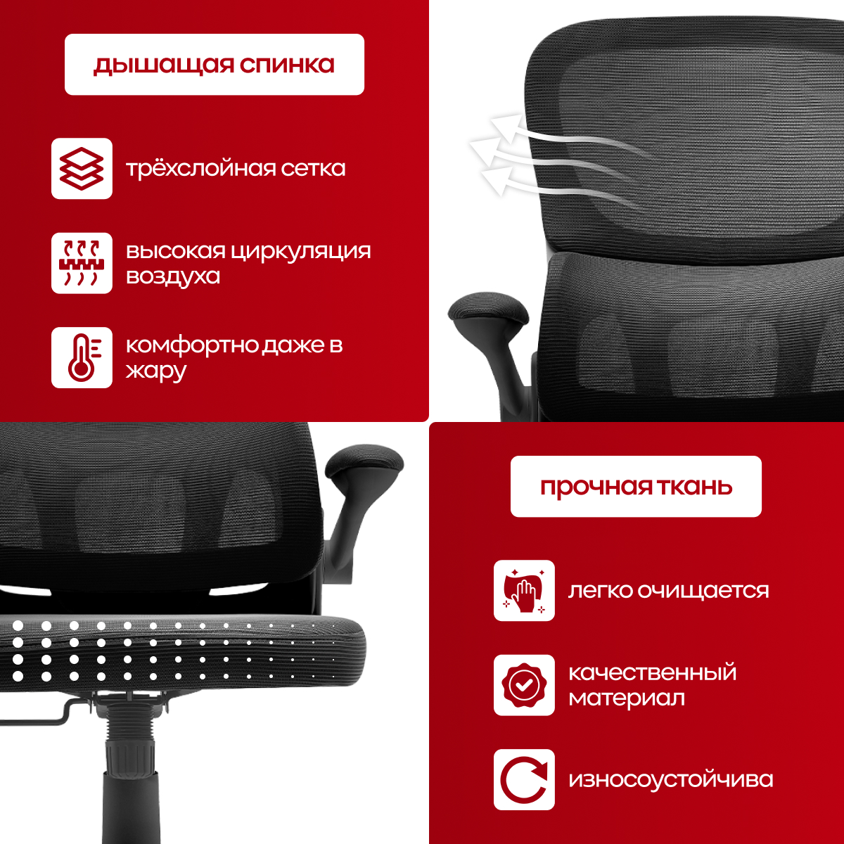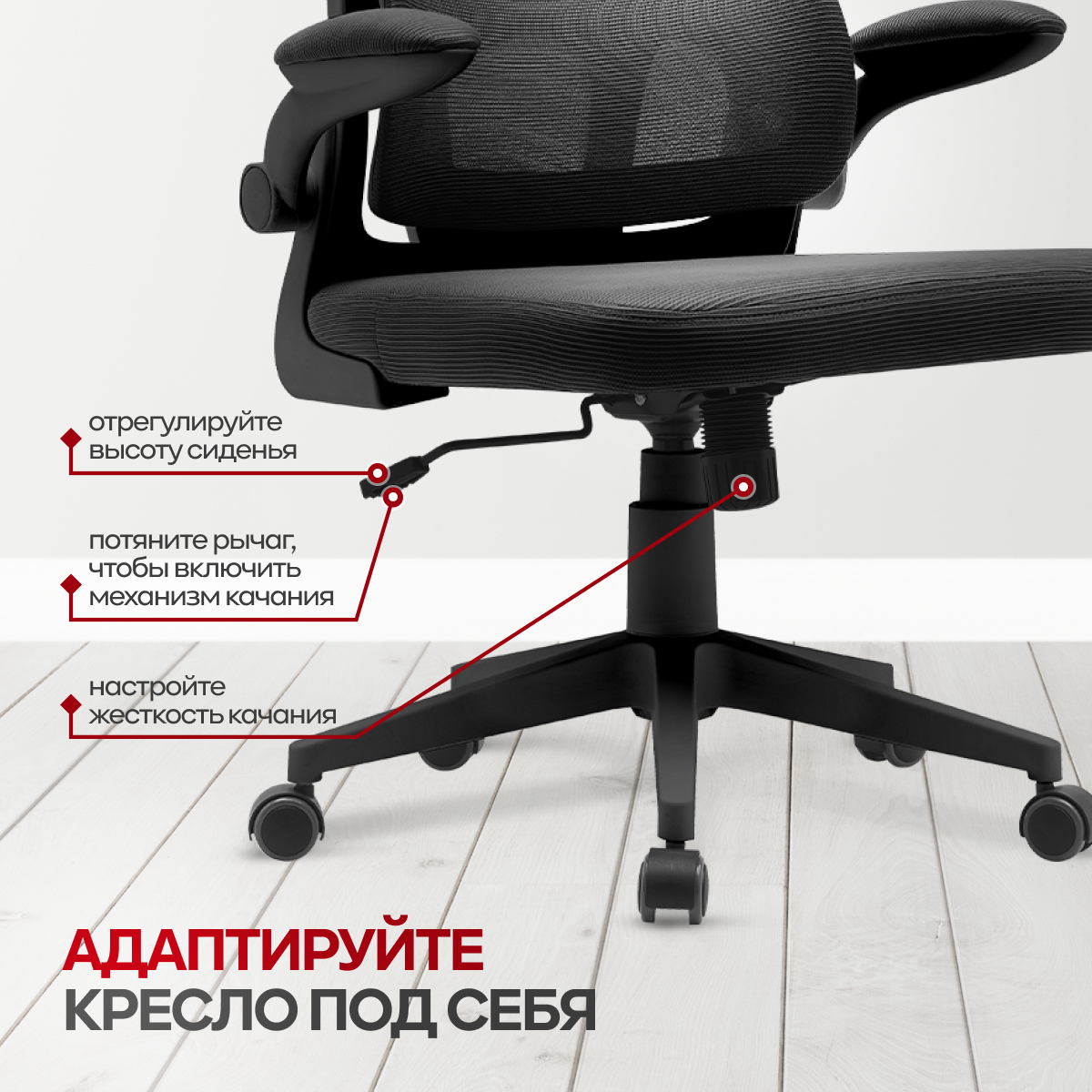Благодаря механизму качания, который позволяет отклоняться до 18°, вы сможете улучшить кровообращение и поддерживать правильную осанку, снижая нагрузку на позвоночник. Это кресло станет вашим верным помощником в сохранении здоровья и продуктивности.