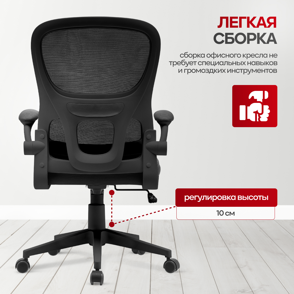 Высота кресла регулируется в пределах 10 см, что позволяет адаптировать его под индивидуальные особенности пользователя и различные виды деятельности.