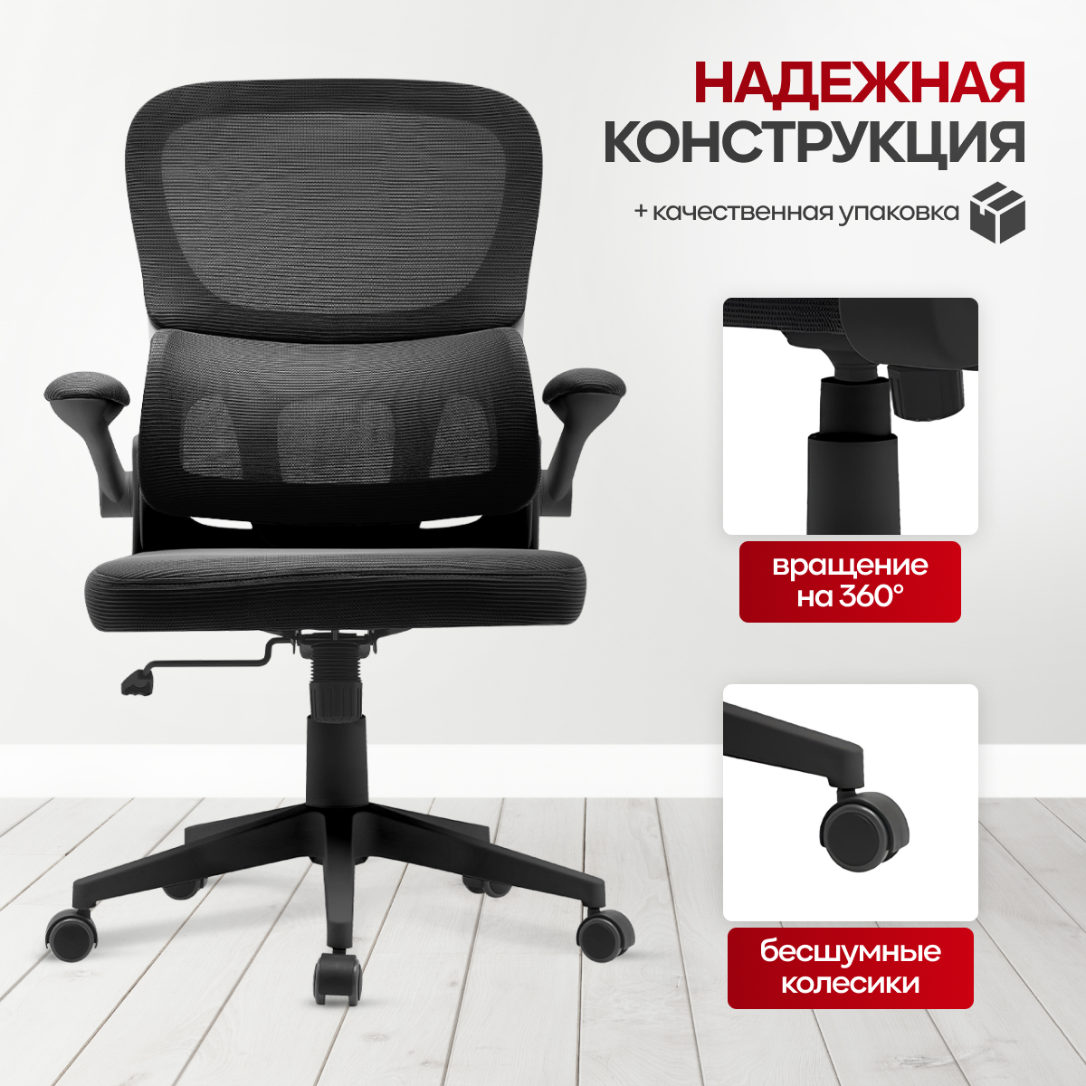 Важно отметить, что кресло оснащено откидными подлокотниками с мягкими накладками, которые откидываются на 90°, что позволяет сэкономить пространство.